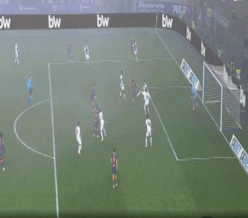 第14分钟,国米左路再攻,迪马尔科下底传中,劳塔罗小禁区前沿抢点甩头攻门,皮球几乎是擦着顶网出了底线。完全被压制的帕尔马,第29分钟差点偷袭攻破国米大门,第29分钟,帕尔马左路快速反击,瓦莱里突到禁区边上兜传门前,奥德列卡小禁区前沿抢点凌空推射,BOOM的一声皮球被横梁挡出,国米逃过一劫。第42分钟,国米左路压上,迪马尔科禁区边上兜传门前,埃斯波西托在2名防守球员包夹下背身扛住将球挡下,迪马尔科机敏跟过来迎球大力推射,皮球直入球门左下死角,国米1:0打破僵局。