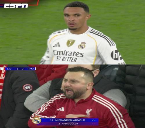 镜头语言,阿诺德上场镜头给到一位利物浦球迷亲吻队徽 -
